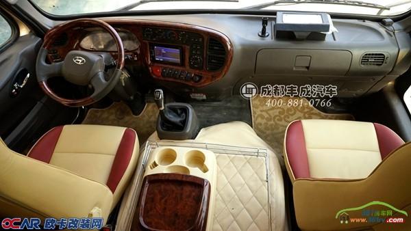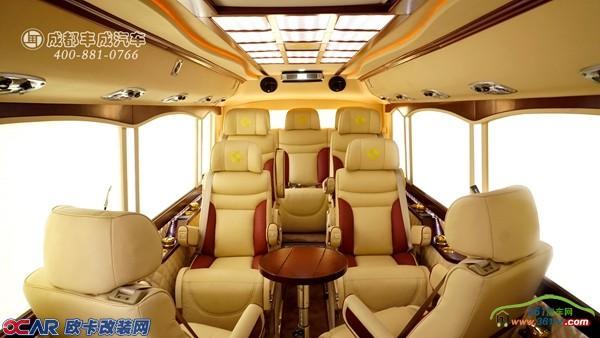 整套内饰改装的座椅部分,都是采用红白搭配的真皮包覆,专门为宏大建设集团设计的座椅样式,并且做了更多的舒适性设计。顶棚造型也更接近现代个性化设计理念,音响部分重新改造,让环绕立体音效充斥整个空间。这部车更大的亮点是更多人性化的改装设计,比如说,部分座椅可以旋转,在需要的时候可以和大家一起娱乐、聊天都很方便。成都丰成汽车全国服务热线:400 881 0766 公司网址:房车改装.cn地址:成都市武侯区武侯大道武兴路映月公园旁(丰成汽车产业园)微信关注可搜索“fengchengqiche"