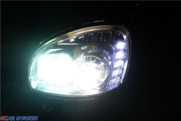西宁专业改灯店@华泰圣达菲车灯升级改装Q5双光透镜