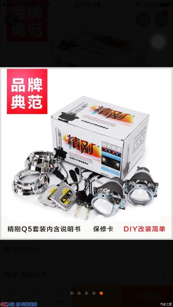 纠结的大灯改装,问了几家改装店都要1500以上,坑人。最后选择了海澜汽配家的精刚Q5双光透镜并果断入手红色恶魔眼、白色天使眼、4300K雪莱特疝气灯,奥兹姆安定器