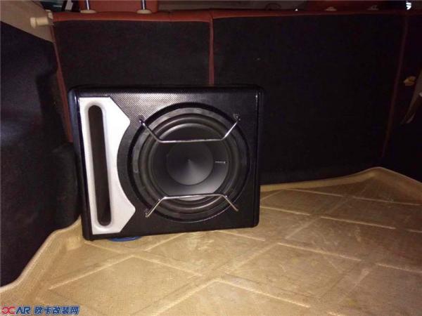 静静安装在后尾箱的赫兹十寸低音,如果朋友们想要节省空间,也可以选择为低音单独制作箱体,但是箱体还总是原配的好,因为低音箱体性能发挥的影响因素太多