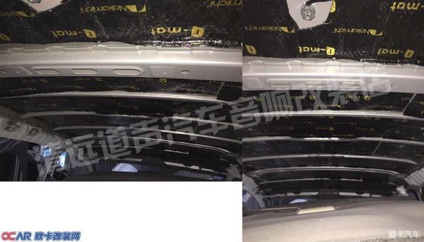通过对车顶内饰板内的铁皮部位粘贴隔音材料,加强钢板的厚重度,从而起到抑制高速风噪及外界其他噪音的效果,同时,顶棚隔音还能提高空调的制冷效率。
