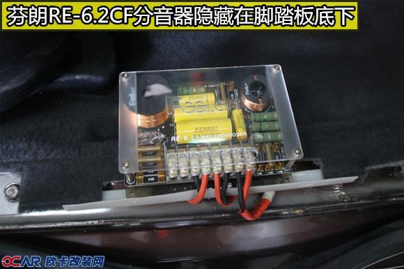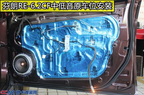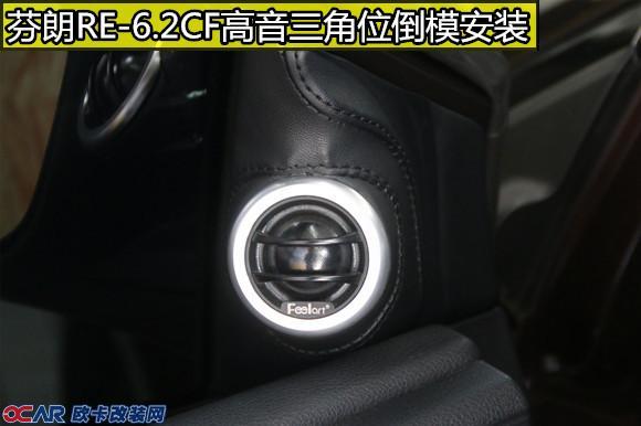 2、喇叭:原车音响系统多为两分频喇叭:门板一个中低音喇叭,高音安装在门板三角位或者仪表台上方或者门板上方,因为成本和技术问题,原车喇叭音质较差,所以能最直观体验到改装效果的方法就是换一套喇叭(就好像一件9.9包邮的耳机和999元的耳机,只有喇叭和线材不同,而音质就有很大的差别)。前声场选择芬朗RE-6.2CF套装喇叭