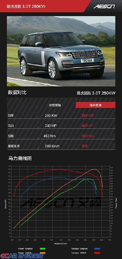 本次升级的路虎揽胜搭载着3.0L机械增压发动机,最大输出功率为250KW(340PS)/6500rpm,最大扭矩为450Nm/3500-5000rpm,与之匹配的是8挡手自一体变速箱。车主反馈日常动力够用,但是车身过重,所以驾驶过程中起步、提速会受到一定束缚,总之动力不够强劲因此找到艾森进行动力优化。