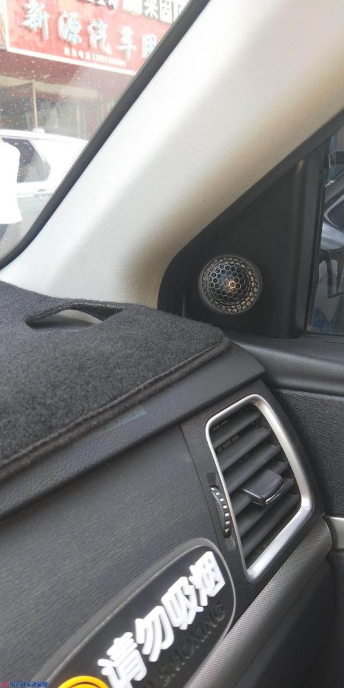 高音的安装一般都是进行A柱倒模处理安装、车门把手附近位置安装,或者是三角板倒模安装,具体是根据原车情况还有车主的安装意向来决定安装位置,在这里高音则是安装在倒模处理之后的三角板上,精确对准耳朵,产生良好效果。
