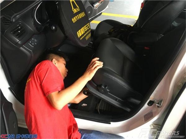 在进行拆装之前都要做好保护跟检查工作好方便下一步施工升级。师傅正在仔细的检查车辆登记。