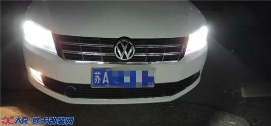 大众朗行 原车大灯几年前改过了一次海拉双光透镜欧司朗氙气灯 这次到店再次升级米石LED双光透镜加装一对LED天使眼