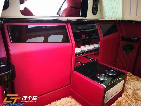 改装项目:①全车座椅包覆(绣标),扶手包覆②隔断+隐藏式座椅③窗帘④面板电源插口⑤门槛迎宾踏板带灯