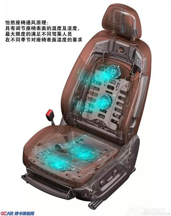 首先我们先来认识下什么是座椅通风功能:座椅通风的原理,主要是通过风扇进行排风。通过在座椅坐垫和靠背背面增加风扇,利用风扇将空气吸入后导入通风层,接着气流向上渗透,经过加热垫流向座椅面套表面,以实现座椅的通风功能。