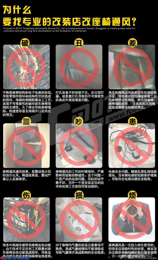 通风座椅原理:连接原车空调冷气系统,通过前级导风装置再到相应的强制静音风机对冷气进行加压进入座椅海绵内,再通过具有我们锋程车改专利技术的导风层,加压后冷气一部分会直接通过真皮的孔洞吹到真皮表面,另一部分会通过我们专利技术的导风层在真皮内部进行大面积的降温。