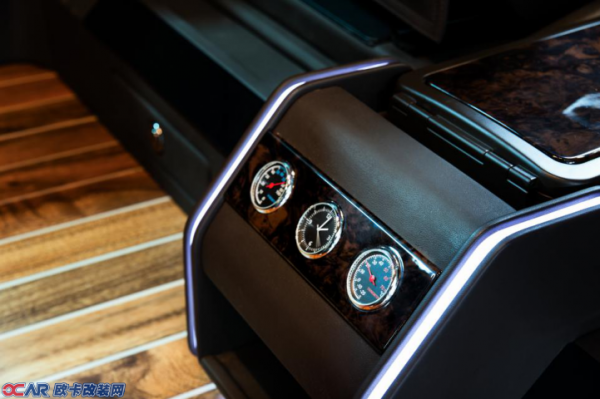 在底盘上,这款车采用了进口大众凯路威底盘,外观大包围加电动门,全时四驱加LED日行灯,内饰采用欧洲大师级纯手工剪裁风格,细腻,精致,质感非凡,车内包覆nappa级皮革,配高光桃木面饰,游艇木地板,可调节后舱置物空间、遥控气囊式按摩座椅,另带冰箱,15.6寸吸顶电视,豪华吧台配以氛围灯装饰,实用且奢华。