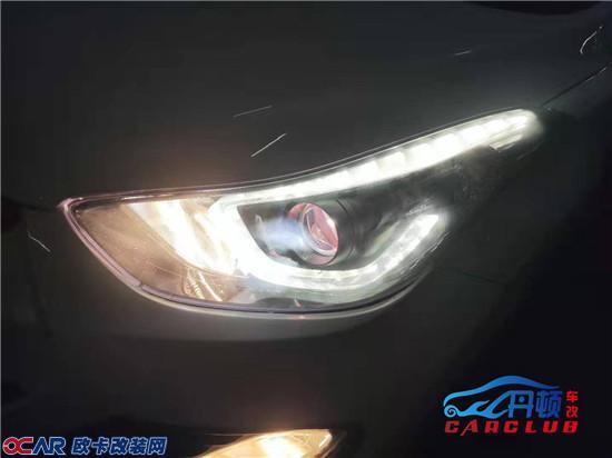 现代朗动原车灯光亮度不够,于是来到南京丹顿灯改,改装米石LED双光透镜。