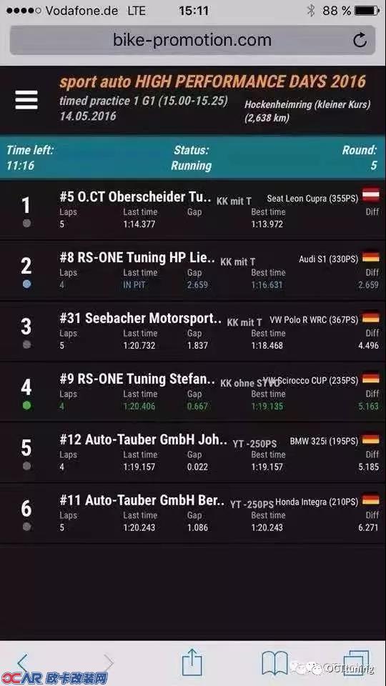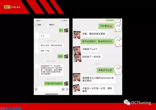 例如奥迪Q5一阶升级后在南方测出的最好成绩是6S,但是在北方可以测到5.5S(北方的气温低,氧含量高),我们公布升级后的0-100KM成绩5.4S,O.CT-TUNING的测试成绩从来不以最好成绩为凭证,我们只会取适中作为给客户的参照。