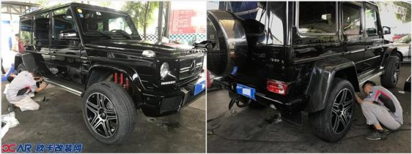 奔驰G级W463碳纤维轮眉G500G63AMG改装4X4宽体大包围备胎不锈钢杠