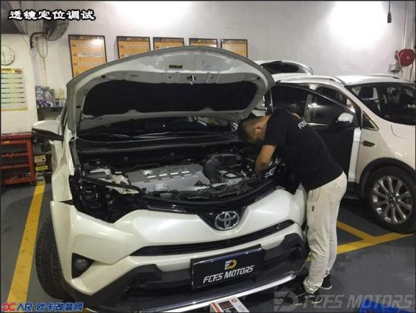 本期案例主角南城老客户介绍的丰田RAV4车主,RAV4原车出厂卤素灯透镜,暗黄的卤素灯我想不要小编过多介绍了,开过的车友们都懂得!车主述:前两天出趟差,走了一趟高速下来是真心的累,照射范围窄、前方路况在高速行驶状态下真的可以用摸黑来形容了,完全就是小时候奶奶用的老式手电筒的感觉!!扎心了老铁,经过老客户的介绍RAV4车主联系到我们锋程改装客服,愉快的交谈后预约到店升级PDK LED双光透镜。