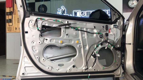 原车在隔音方面存在不足之处,门板直接露出钣金,没有任何隔音材料。当音响音量加大时共振噪音比较明显。因此我们用萨霆给门板打造一个标准密封箱体,不仅可以降低风噪,门板共振,还可以提升音响发挥的效果。