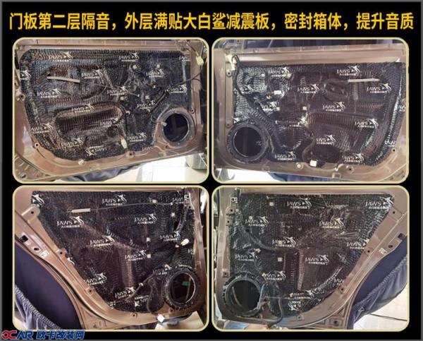 门板第一层汽车隔音改装,内层贴大白鲨减震板,抑制门板间的钣金共振。