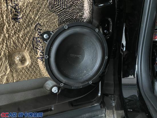 前声场安装一套歌剧世家VS265两分频喇叭,高音单元安装在原车A柱处,中低音单元安装在门板,让声音在各频段有更好的衔接,层次分明,音乐如人心。