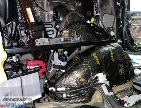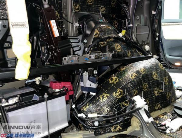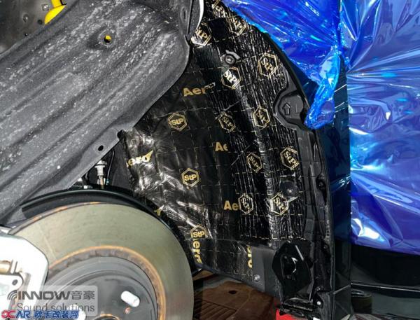 汽车行驶时会产生较大的路噪和胎噪,此类噪声主要通过翼子板处传入到车厢内部。技师从路噪和胎噪的传播路径入手,使用STP航空炸弹、AC06棉和STP航空NB3,对翼子板做了止振、隔音和吸音处理,从而切断了路噪和胎噪的传播路径,将其阻挡在了车厢之外。