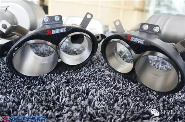 改装配件集体合影:AKrapovic(天蝎)排气、车道保持系统、变道辅助系统、新款矩阵LED动态尾灯、BMC高流量风格。