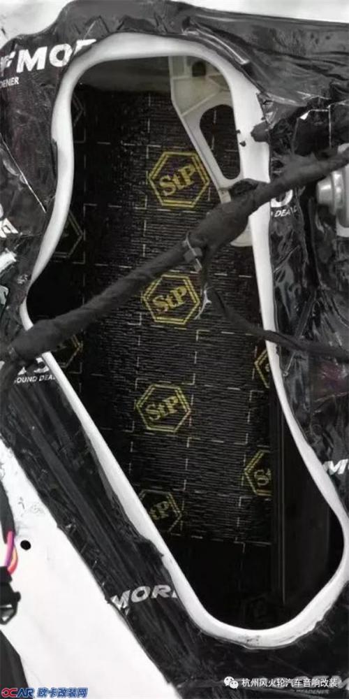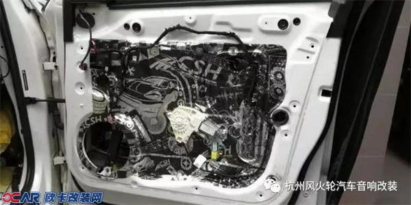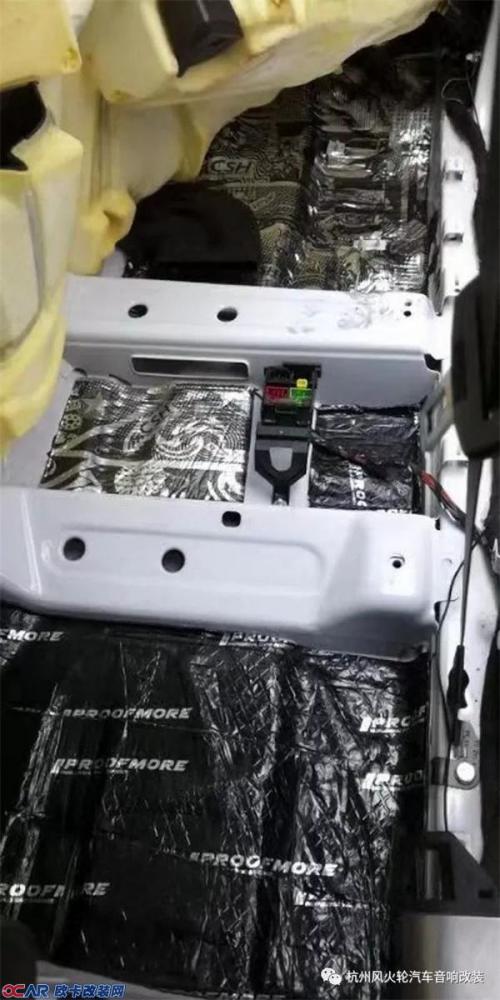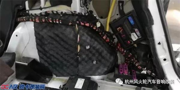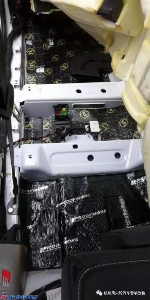 【改装效果点评】扎实的做工和充足的用料,让车主看在眼里乐在心里,每一个安装过程都赏心悦目,而最终该得到的结果也令车主非常的满意,不仅是隔音效果的提升让车内安静,音响的提升更让车主惊喜不已,再次对杭州风火轮的改装技术给予高度评价。