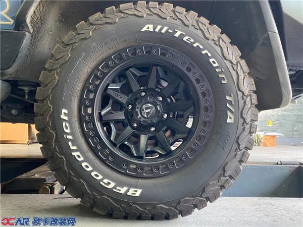 FUEL防脱圈轮毂搭配主流的百路驰KO2轮胎,265/70/R17的尺寸对FJ来说不大不小正合适,完美适用于轻度中度越野需求的客户群体,城市代步与越野穿越两不误。