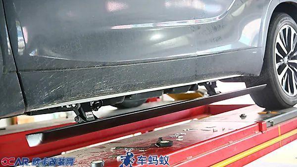 师傅先将固定踏板的支架安装在底盘上,踏板都是专车专用的,所以直接用螺丝固定在车辆底盘上就可以。