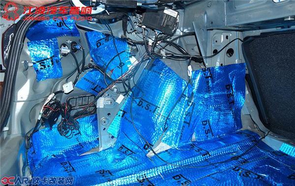 先使用DST止震板对汽车的底盘进行了必要的止振处理,然后又使用纤维棉对汽车的底盘进行第二层的密封处理。