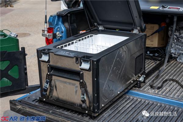 坦途宽大的货厢空间简直可以尽情“挥霍”。打开尾门后,ARB的钢铁侠冰箱坐落在一旁,通过专用的滑轨支架可将其拉出车外,取放食物饮品也变得更轻松。