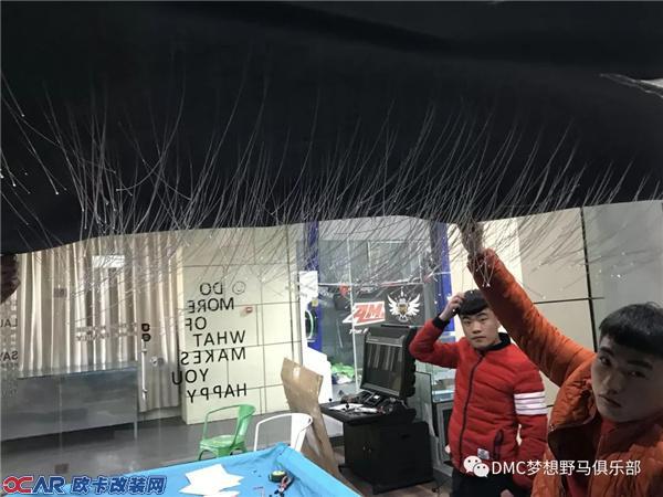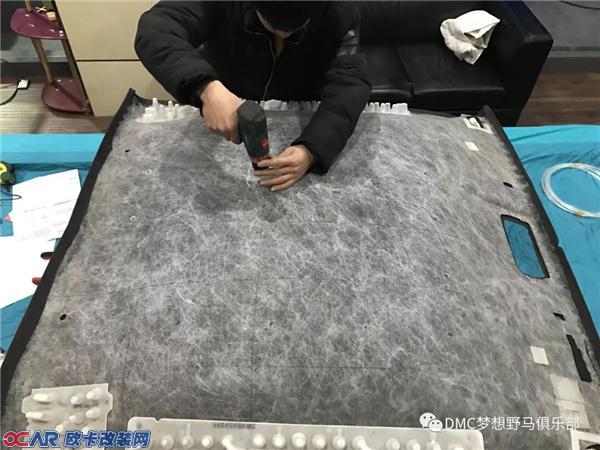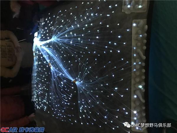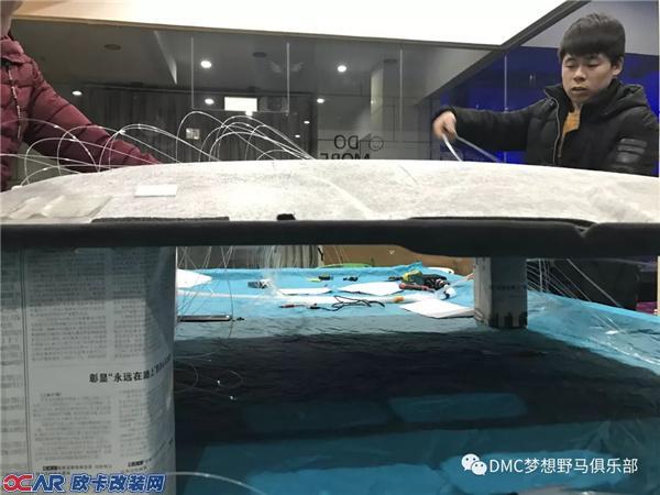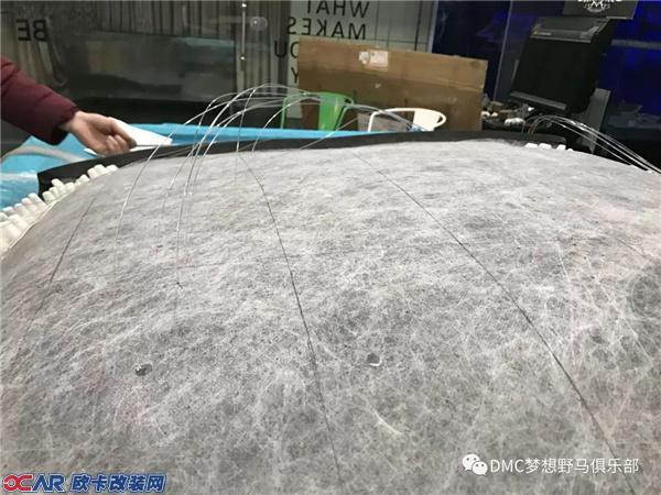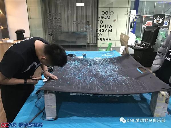 现在星空顶全部点亮,把多余的光导纤维给修剪一下,就可以把星空顶往车上安装了。