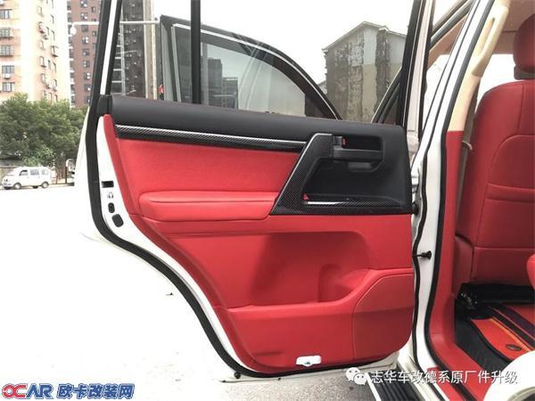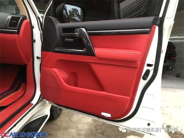 好马配好鞍,豪车配碳纤,红配黑永远不过时的经典,今天这台丰田酷路泽为我们带来永远的经典。内饰方面为它升级整车黑色碳纤维饰板以及红色的真皮座椅,红黑相映融合度非常好。