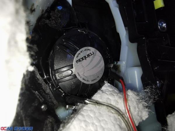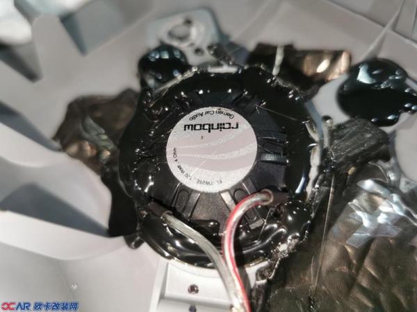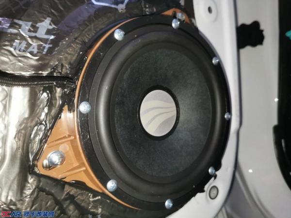 隔音完成后,技师将前后声场喇叭,都升级成了德国彩虹EL-C260E两分频,它的中低音单元使用的是亚黑纸胴体振膜,让中低音部分音色醇厚,且富有弹性;高音使用的是天然纤维丝质振膜,让高频部分清晰透亮,十分开阔。不仅如此,将其安装在门板原位也刚好合适,不会对汽车的原有线路做过多改动。