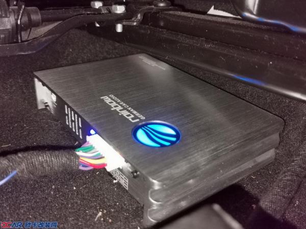 在音源端,技师为汽车添加了一台德国彩虹EL-P0455A音频处理器,它既可以对音频信号进行优化,保证音频信号的干净和完整,同时还能够充当功放,保证喇叭的功率稳定。