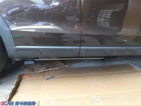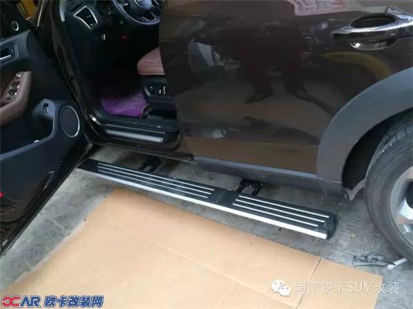 奥迪Q5改装的这套电动踏板在关门的时候会自动折叠至车底,不影响车辆的通过性。