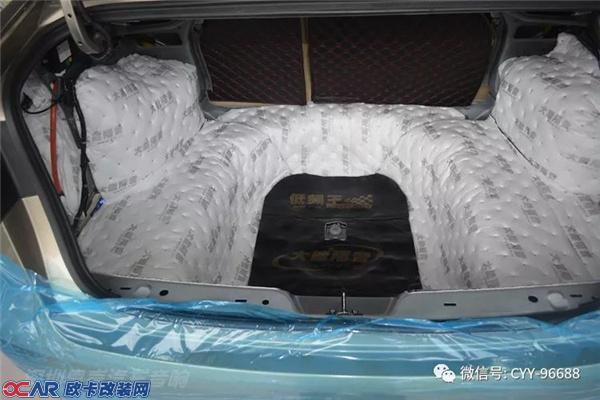 尾箱隔音处理:隔音工艺和底盘隔音一样的,同样是先减震之后再进行吸音处理。