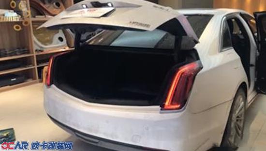 凯迪拉克CT6改装的电动尾门是左右各有一个尾门撑杆,这样的撑杆使用起来更加稳定,同时不会因为是单杆顶起尾门,导致尾门变形。