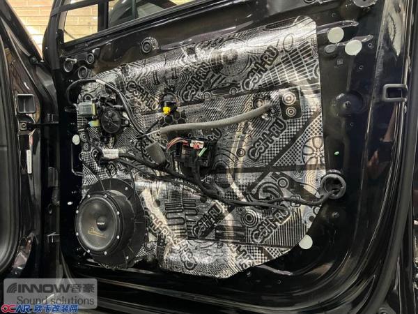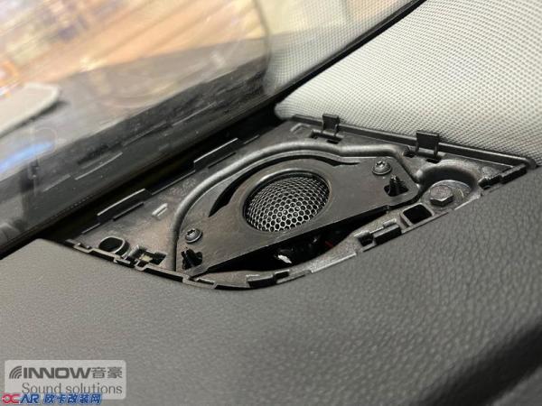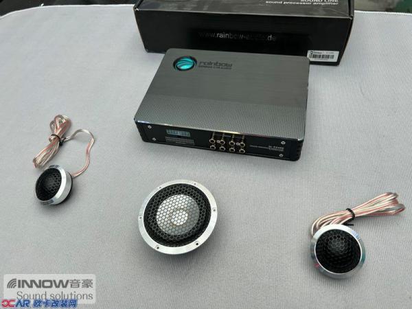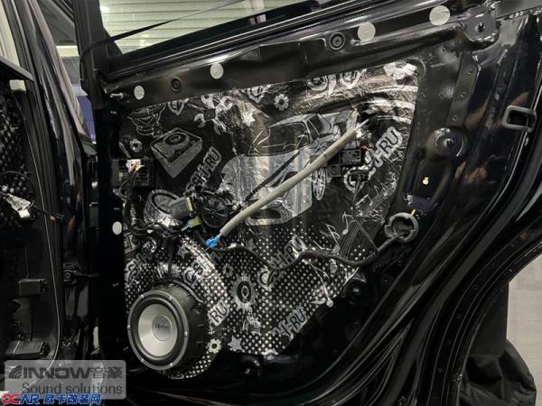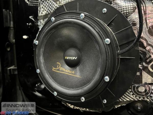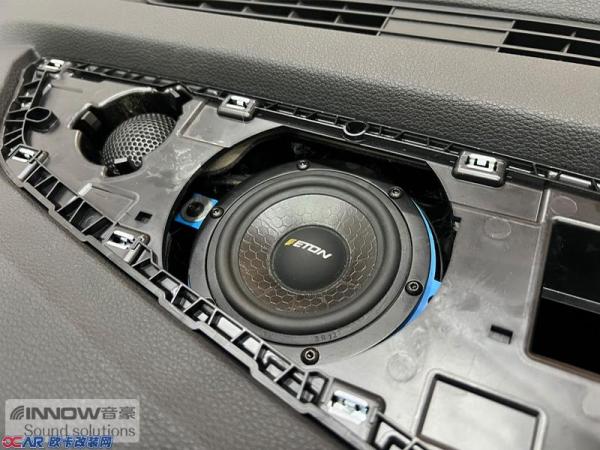 在使用俄罗斯STP 小炸弹减震板对门板做了隔音处理后,技师将前声场喇叭升级成了由德国伊顿 RSR160两分频+PRO80中音组合而成的三分频套装喇叭,德国伊顿 RSR160两分频的中低音单元使用了编织纤维音盆,让中低音部分沉稳有力,高音使用的是丝膜球顶设计,可以很好的拉高整体声场,让音乐显得更加通透。而PRO80中音的添加,则让音乐显得更加饱满,富有弹力。