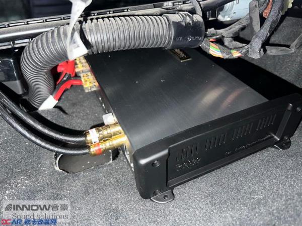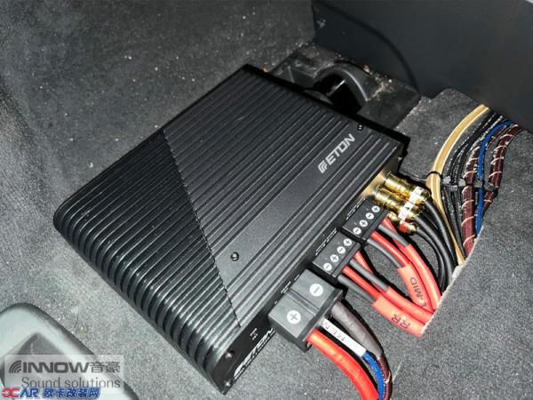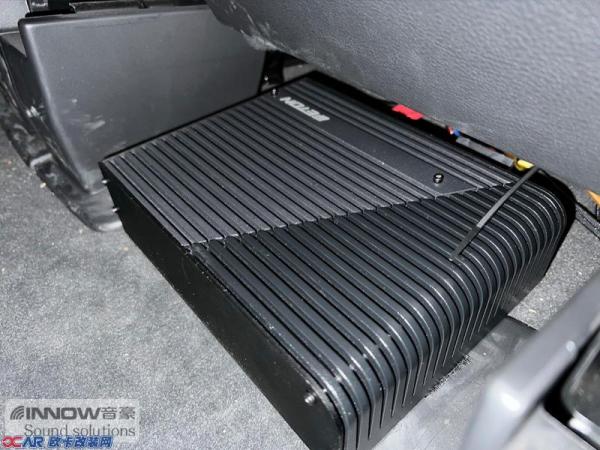 在音源端,技师为汽车添加了一台德国彩虹 SL-PA400音频处理器,它具有EQ调音功能,可以对音频信号进行优化,让声场的塑造更加真实立体。而为了让声场喇叭充分发挥出其应有的效果,技师则为前后声场各添加了一台功放。