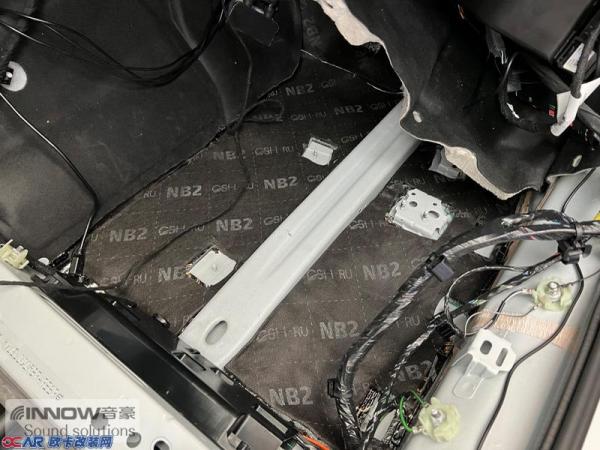 技师先使用CSH小炸弹对仪表台下方做止振处理,降低该部位的钣金共振;再使用AC06棉对仪表台下方进行了第二道的隔音处理,阻止前舱各类噪音的传播;最后使用NB2棉进行吸音处理,全方位阻隔前舱各类噪声传入驾驶室。