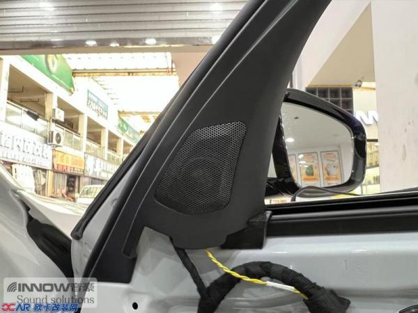 而为了能够让整车音乐效果统一,技师将后声场喇叭也更换为德国伊顿 宝马专用中高音,这样前后声场一致,能够提升整车的音乐品质,进而带来更加愉悦的驾乘体验,高音单元安装在了后门板把手位置,不仅能够为后声场带来丰富的立体层次感,也能够提升整体美观性。