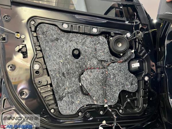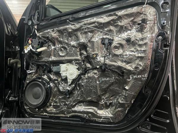 原车门板内部隔音措施比较欠缺,门板处产生的噪声会影响到音响的品质,所以技师使用俄罗斯StP smart,对门板做了隔音处理,让门板形成一个密封箱体,有效减少风噪对音响品质的影响。
