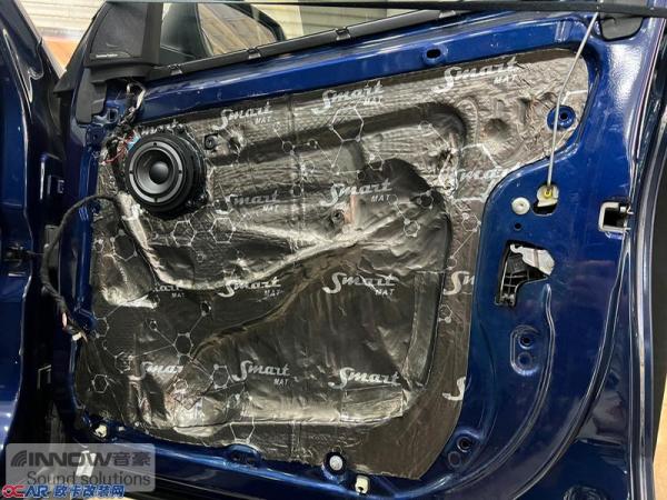 原车门板内部使用的隔音材料质量很差,难以起到良好的隔音效果。技师将原车劣质的隔音材料清除,使用SMART对门板重新做隔音处理,有效增强了门板处的密封性,阻止了风噪传入。